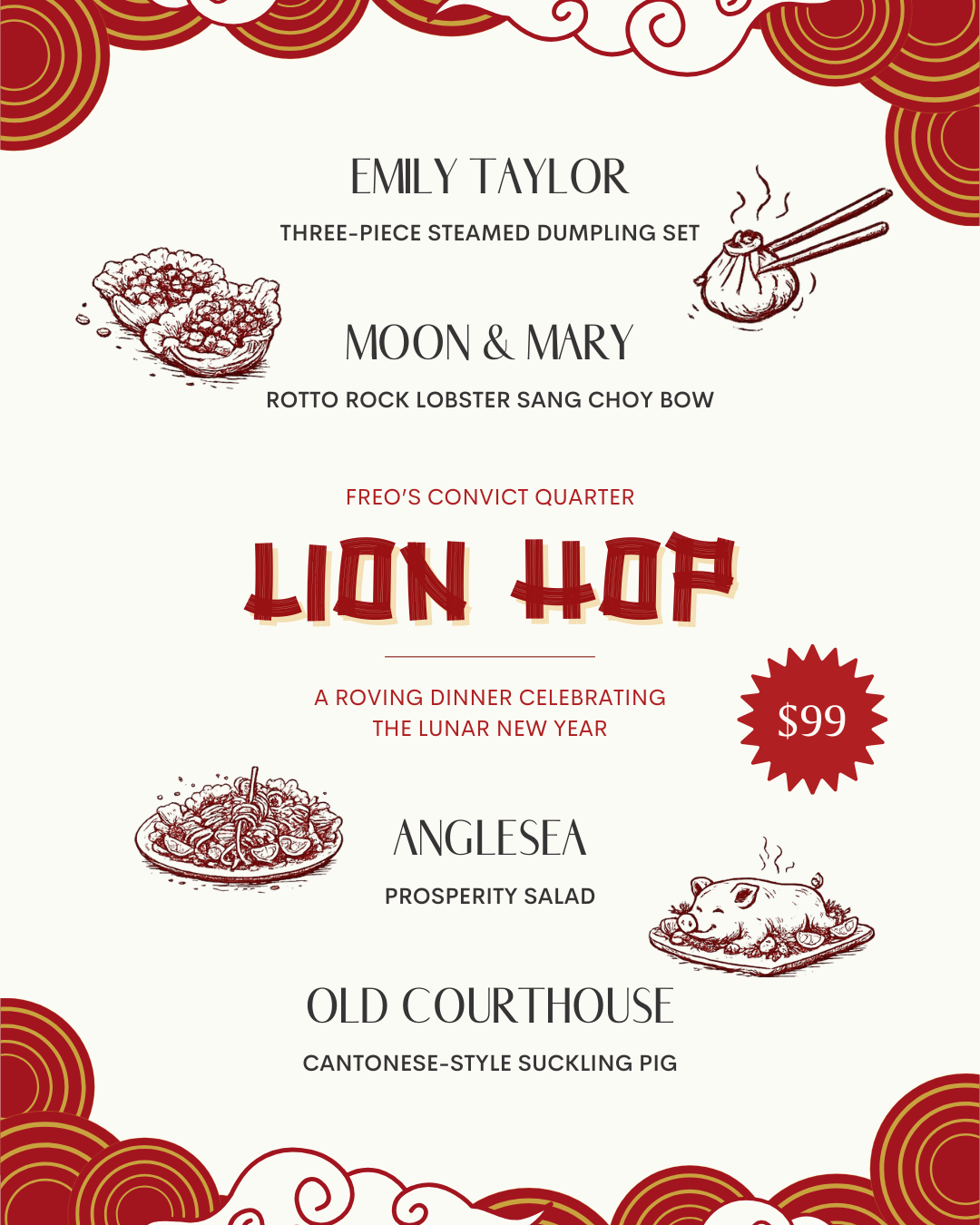 Seats are limited - book now to join the Lion Hop and start your year with a feast, a dance, and a little Freo magic.