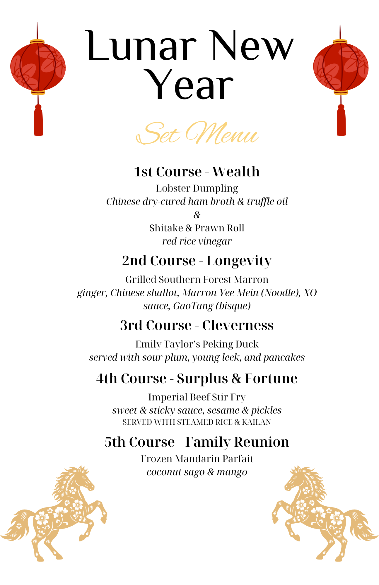 Our Lunar New Year Set Menu is $159 per person, with à la carte dining also available.